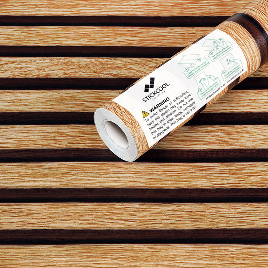 STICKCOOL 10m Roll Peel and Stick Vinyl 3D Wallpaper Wood Stripe Adhesive