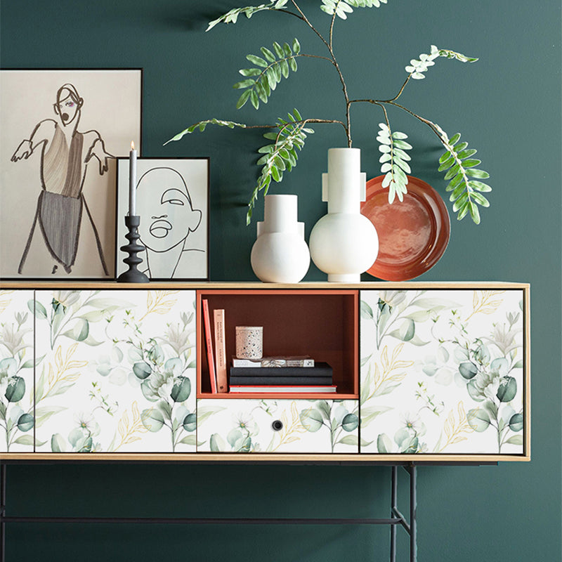 10m Roll Peel & Stick 3DWallpaper Furniture Cabinet Watercolor-Leaves
