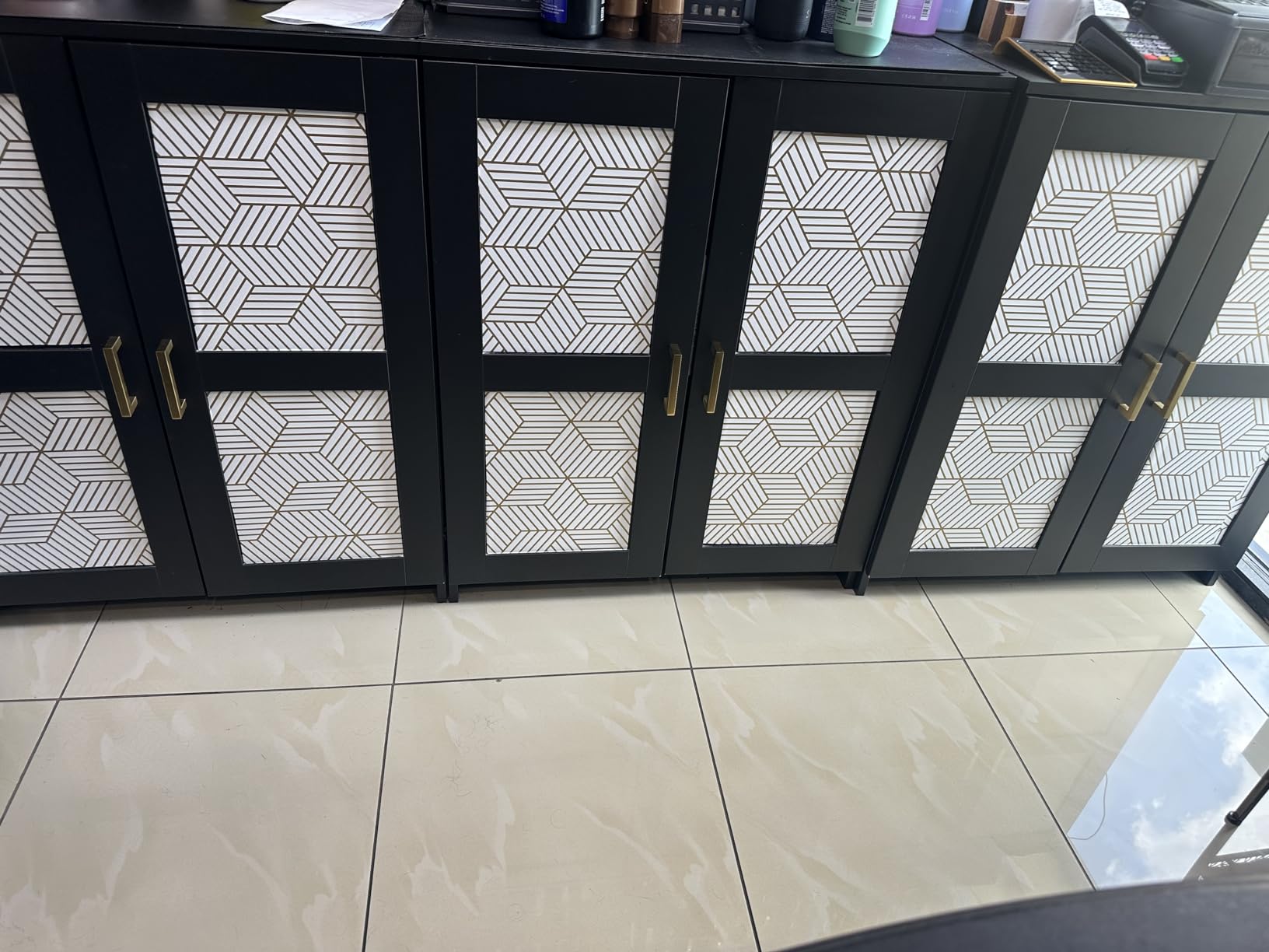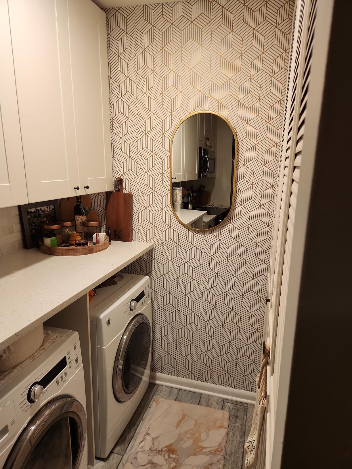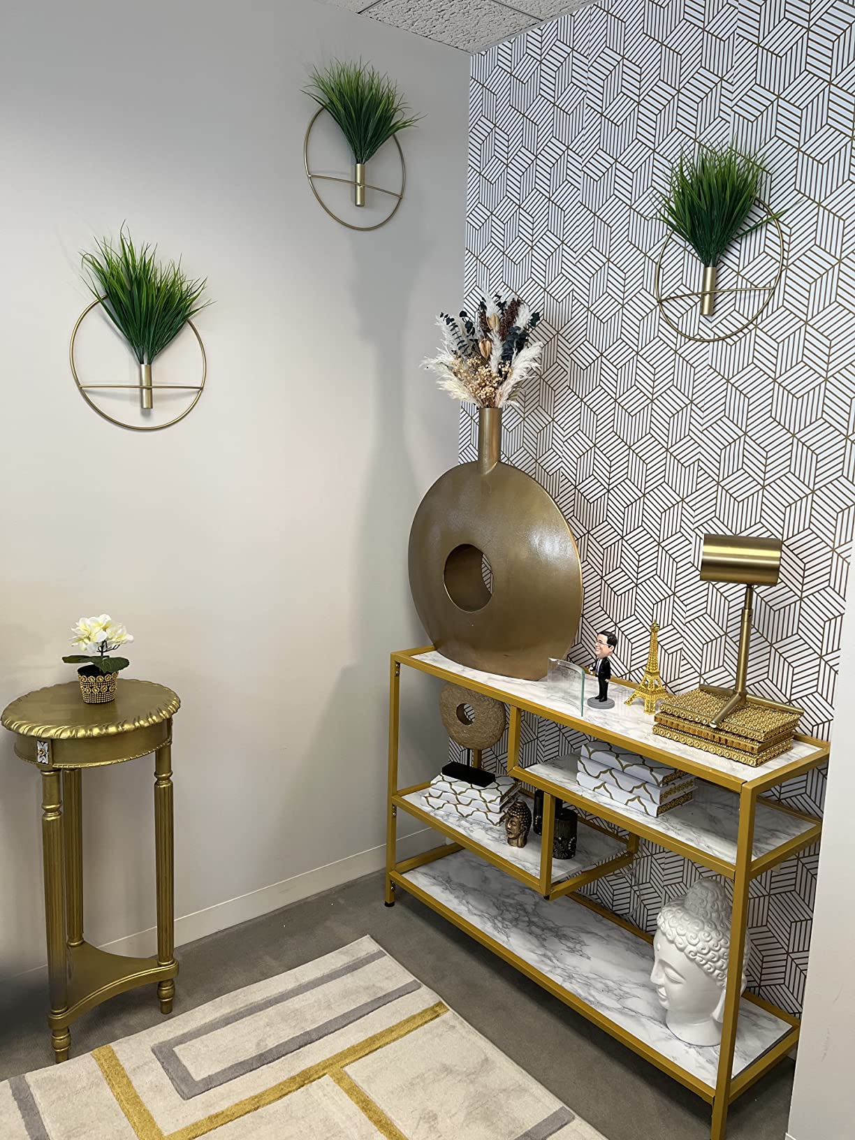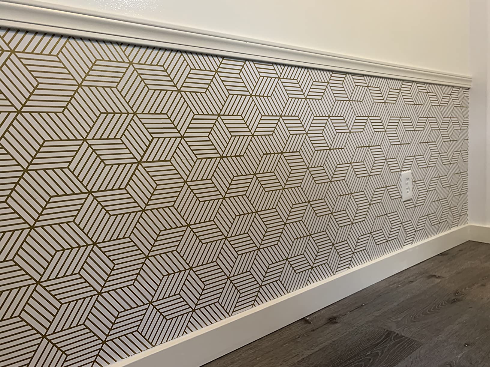 Gold and White Geometric Cover 4.5M Self Adhesive Vinyl Wallpaper for Bathroom Cabinet Wall Decor