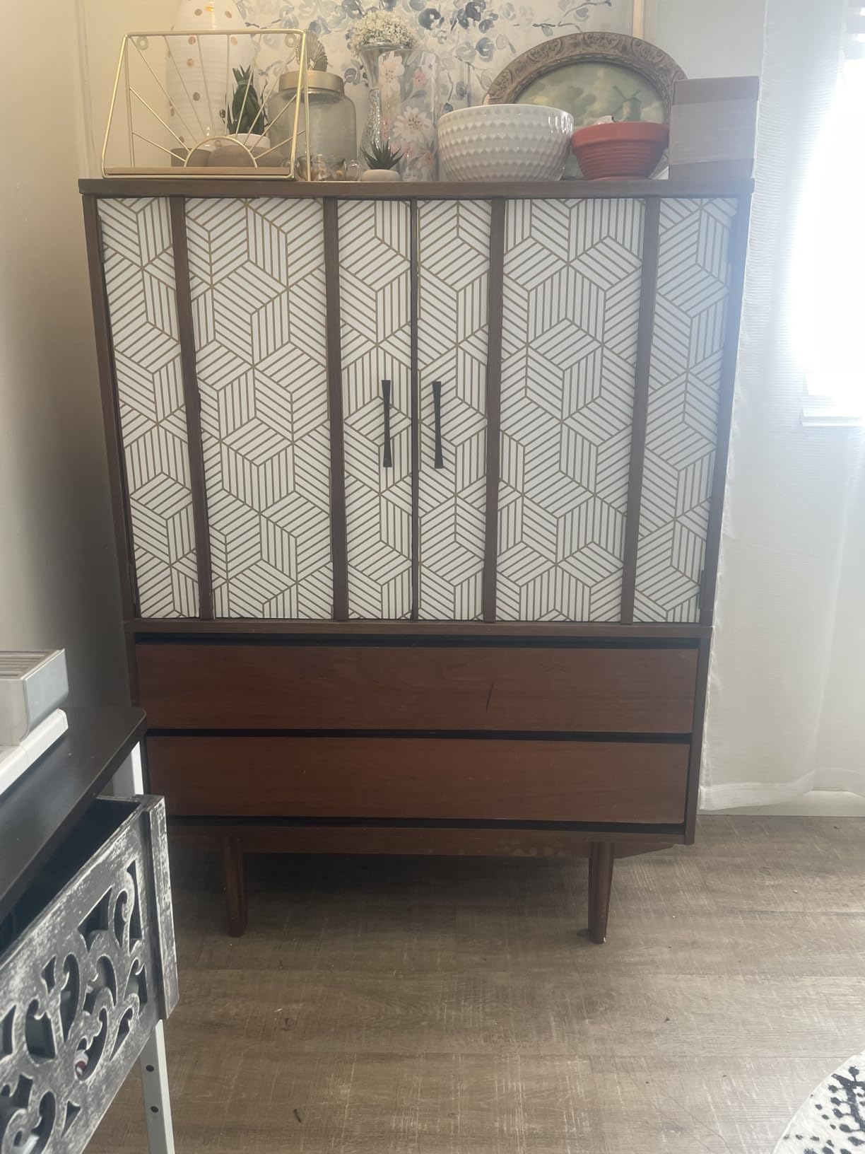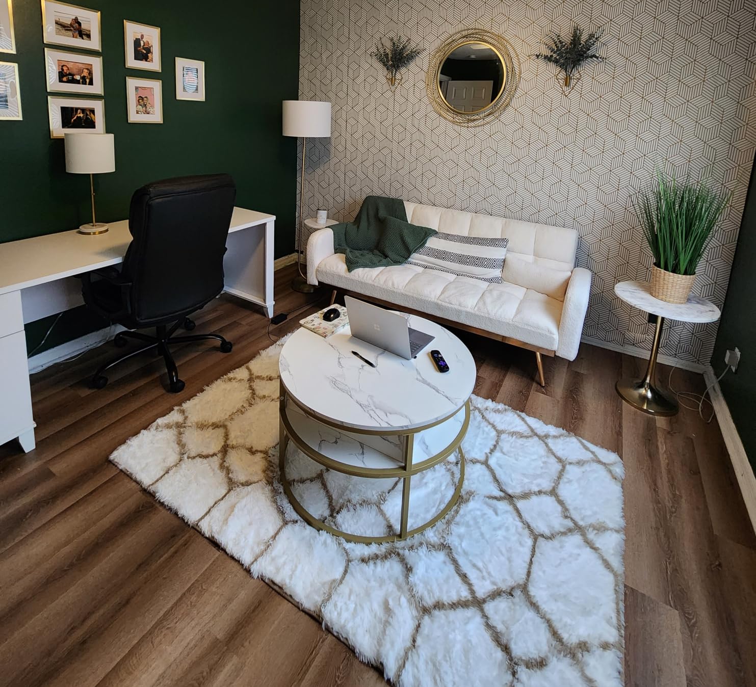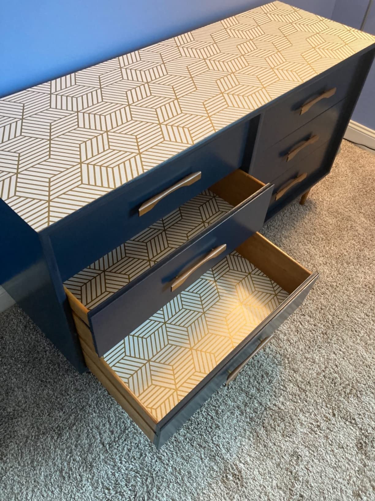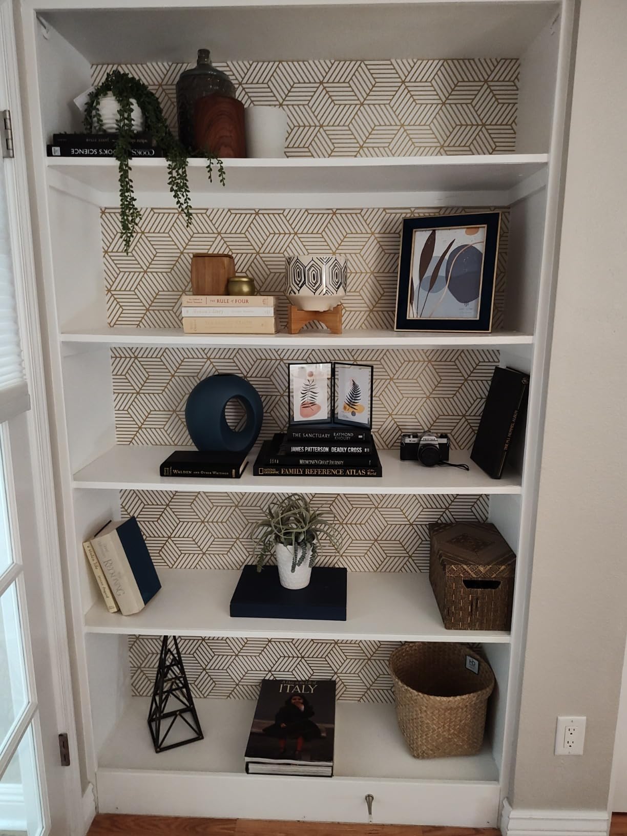 Gold and White Geometric Cover 4.5M Self Adhesive Vinyl Wallpaper for Bathroom Cabinet Wall Decor