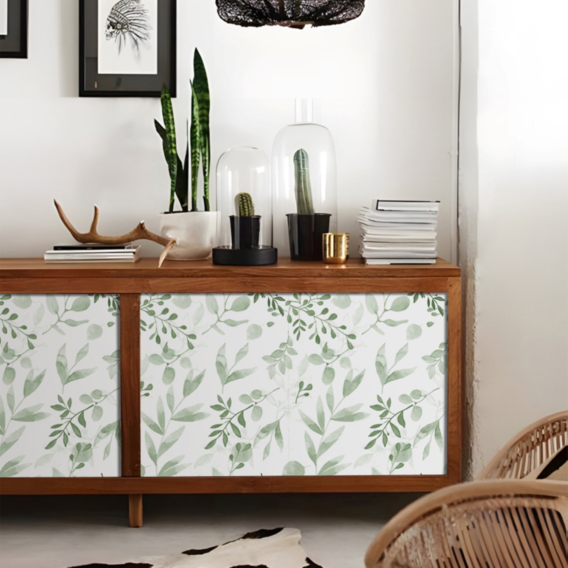 10m Roll Peel & Stick 3DWallpaper Furniture Cabinet Watercolor-Leaves